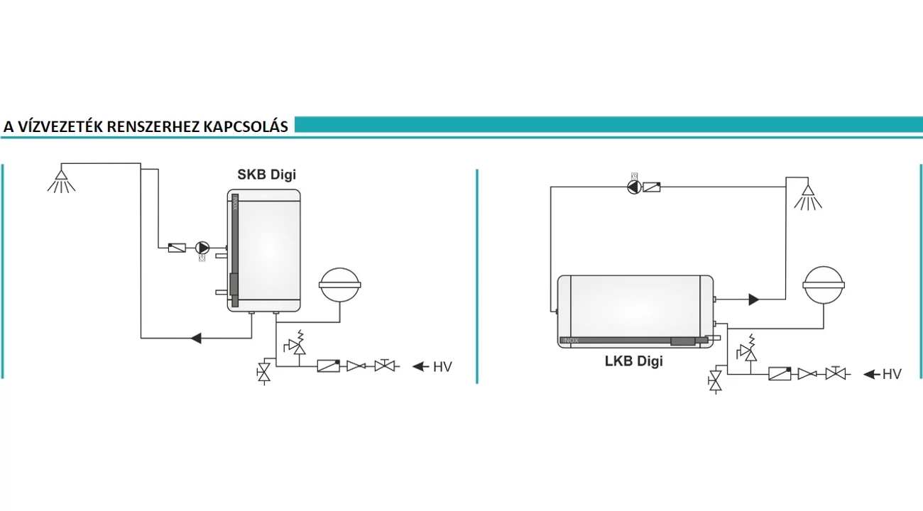 Az SKB-Digi 100 tartály ún. recirkulációs vezetékkel felszerelt, melynek köszönhetően a meleg víz folyamatosan rendelkezésre áll a vízcsap előtt, így a meleg víz kivétel előtt nem szükséges a csővezetékben lévő hideg vizet kiengedni, amíg a meleg víz rendelkezésre áll.