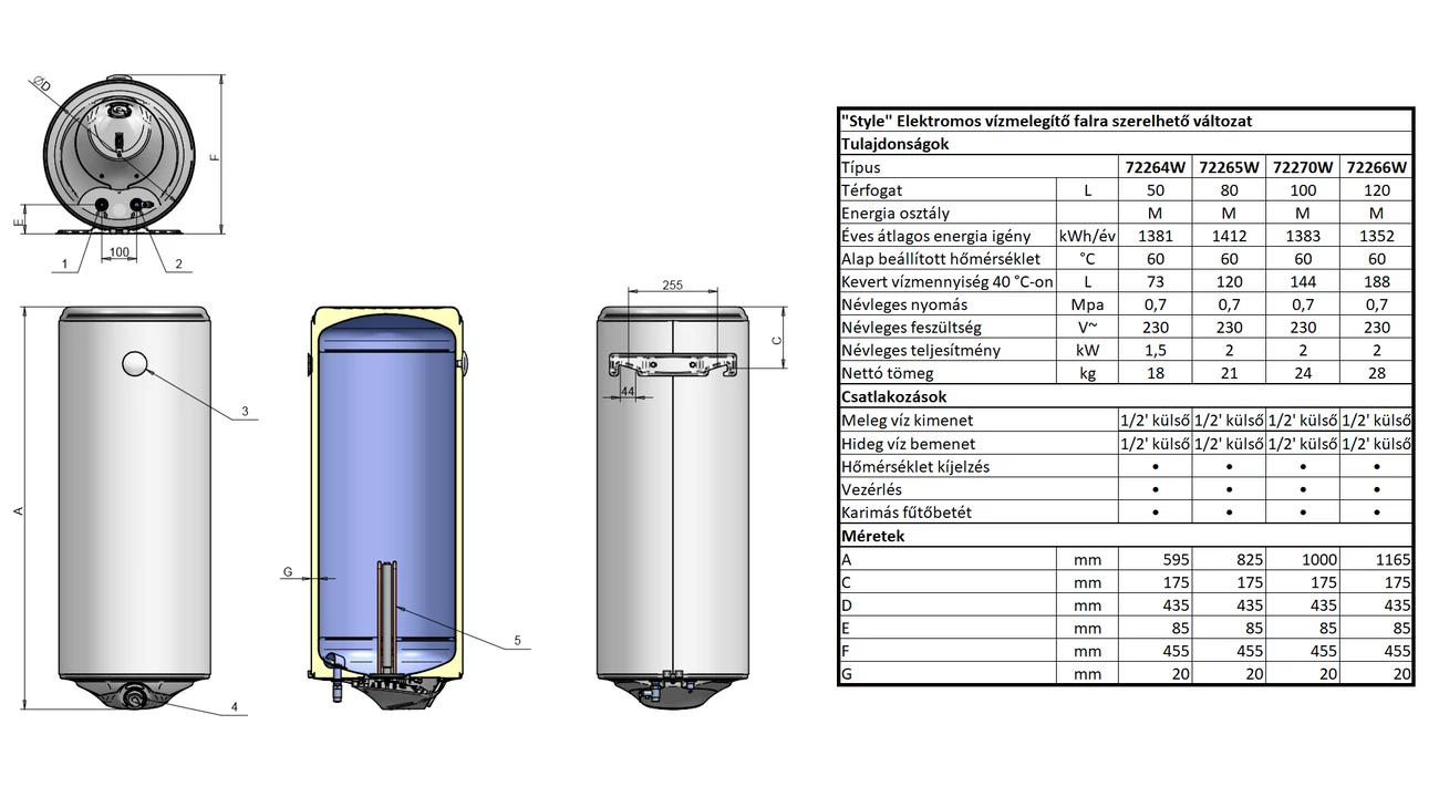 Kizárólag használati meleg víz előállításra és tárolásra kialakított elektromos vízmelegítő (villanybojler). Az elektromos fűtőbetét használata gazdaságos üzemeltetést biztosít. Az 1,5 kW teljesítményű fűtőbetét a kisebb elektromos terhelésnek köszönhetően hosszabb élettartammal bír. A 50 liternyi vízmennyiség 2 fő részére biztos meleg vízellátást biztosít.